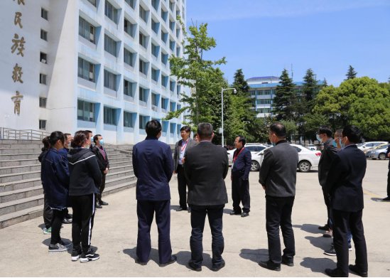4月28日,校党委书记褚光荣、校党委副书记张鹏程在相关职能部门负责人陪同下赴花溪校区走访慰问教职工,并指导防疫复学准备工作。