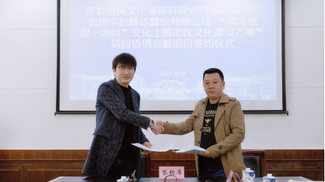 会后,多彩贵州文化省部共建协同创新中心副主任王长城与贵州中投腾达置业有限公司副总裁兼贵州欧图欧商业管理有限公司总经理王俊签署项目合作协议书。