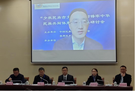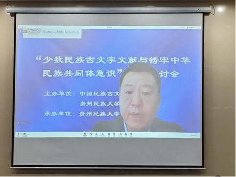 贵州民族大学校长王林现场致辞。他说,贵州民族大学在国家民委、贵州省民委的领导下,有组织地开展彝文、水书、方块布依文、汉字记侗语文等少数民族古籍文献的搜集、整理、保护、翻译、研究工作,成为贵州省民族古籍事业工作的中坚力量。目前,贵州民族大学正在省民委古籍办的指导下,扎实推进贵州少数民族古籍文献的抢救、搜集、整理、翻译、出版、保护、研究、修复等各项工作。本次研讨会,专家学者围绕少数民族古文字文献与铸牢中华民族共同体意识开展学术研讨,贡献真知卓见。这对推动铸牢中华民族共同体意识意识和相关学科建设发展具有积极的意义。