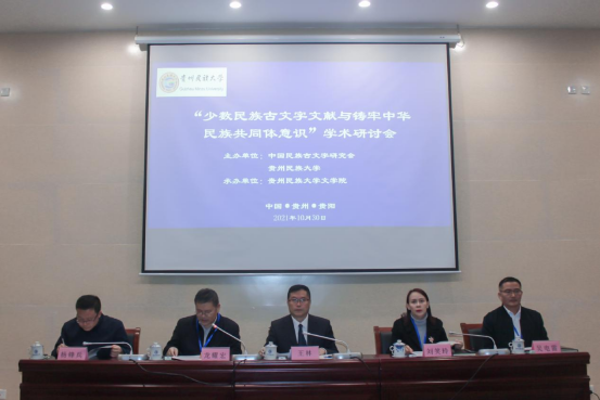 10月30日,由中国民族古文字研究会、贵州民族大学主办的“少数民族古文字文献与铸牢中华民族共同体意识学术研讨会”在我校举办。国家民委全国少数民族古籍整理研究办公室业务处处长杨硕,中国社会科学院民族学与人类学研究所党委书记、中国民族古文字研究会会长赵天晓分别“线上”出席开幕式并致辞,中国社会科学院民族学与人类学研究所研究员、中国民族古文字研究会副会长兼秘书长孙伯君与中国社会科学院民族学与人类学研究所研究员、中国民族古文字文献研究资深专家聂鸿音先生“线上”出席开幕式。我校校长王林出席并致辞,文学院党政负责人及师生代表20余人参加会议。开幕式由贵州民族大学文学院龙耀宏教授主持。