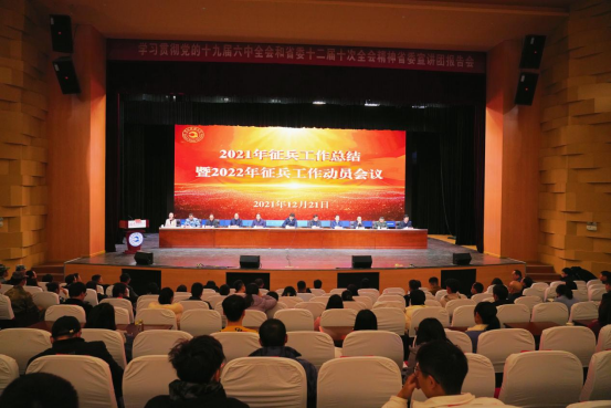 12月21日,贵州民族大学2021年征兵工作总结暨2022年征兵工作动员大会在大学城校区召开。校领导褚光荣、王林、张鹏程、杨声国、熊元、周杰、任达森、黄其松,省人民政府征兵办公室上校参谋王荣杰,贵阳市花溪区人民政府征兵工作领导小组副组长、花溪区人民武装部部长朱峰上校,以及校党委委员奉振、任洁出席会议。校征兵工作领导小组成员单位主要负责人、各学院党政负责人、分管征兵工作的班子成员、负责征兵工作的辅导员、毕业班班主任代表、大学生入伍预征班学员代表、学生代表近500人参加会议。