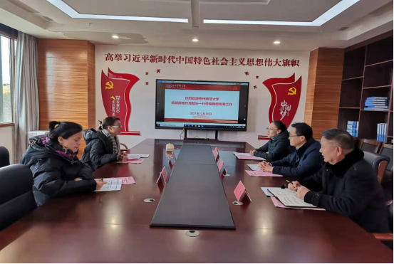 12月30日,贵州师范大学党委委员、统战部部长姚作舟一行到我校开展2021年省属高校统战工作互学互鉴交叉检查工作。校党委副书记杨声国,校党委委员、宣传部、统战部部长任洁出席汇报会,党委统战部全体成员参加。