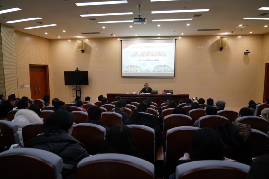 1月4日,校党委副书记张鹏程为分管联系的部门、学院以及机关党委教职工作党的十九届六中全会精神和省委十二届十次全会精神宣讲。党办主任刘勇主持宣讲报告会。