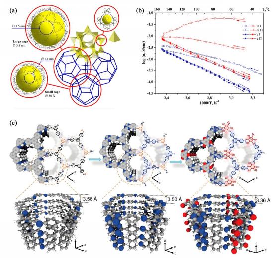 作为新一代质子导体设计平台,高结晶性多孔材料,如金属有机框架和共价有机框架,凭借精确可调的亚纳米孔道、高比表面积及可功能化拓扑结构,在质子传导领域展现出巨大的应用潜力,成为质子传导材料的理想候选。系统构建“化学修饰-孔道工程-界面优化”三位一体策略,实现晶态材料快速稳定传导,是未来电池传导材料的变革性解决方案。