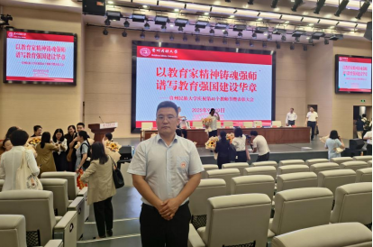 如今站在讲台上,他的目光依旧如二十年前初登讲台时那般,温暖而坚定。他始终以“学高”为基,把专业学识化作照亮学生的光;以“身正”为魂,用言行诠释着教育者的担当。在语言的广阔田野与三尺讲台之间,他默默为无数学子铺就通往更广阔世界的道路,也让“师者”二字,在岁月沉淀里愈发厚重动人。
