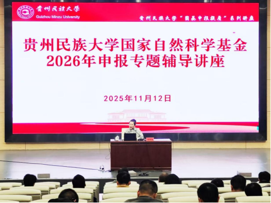 11月12日下午,贵州民族大学邀请贵州大学化学化工学院副院长、三级教授吕梦岚开展“2026年国家自然科学基金”申报专题讲座。学校相关院系重点培育项目教师参加讲座,讲座由我校科研处组织。
