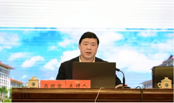 我校党委书记吕国富作了《深学细悟笃行党的二十届四中全会精神,奋力建设特色鲜明的高水平现代化综合大学》为题作首场专题讲座。