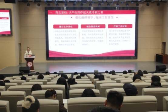 校党委常委、党办主任、校办主任李雪如讲授“学习贯彻贵州民族大学第三次党员代表大会精神专题”